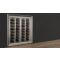Inclined layout : this showcase can hold up to 224 bottles, inclined on aluminium tubes, of which 128 are inclined towards the front, with the label visible, and 96 are inclined towards the back, which are not visible but accessible. The maximum diameter of the bottles is 120mm, which allows for most 75cl and magnum sizes from all regions (Bordeaux, Burgundy, Champagne).