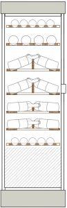 The floor is doubled with a watertight tank filled with white pebbles, similar to a natural wine cellar floor. Enable water spraying in order to maintain a convenient hygrometric rate