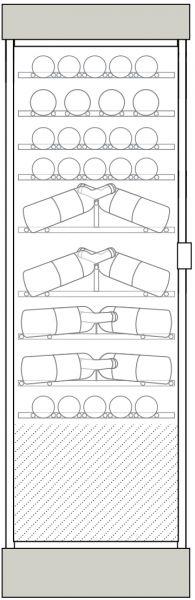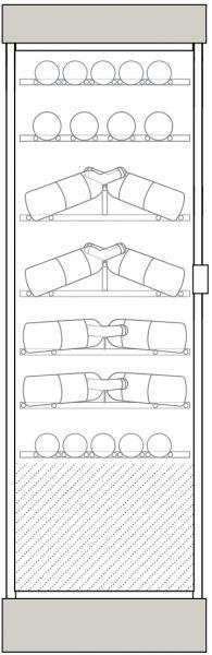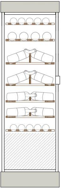 Watertight tank with white pebbles: The floor is doubled with a watertight tank filled with white pebbles, similar to a natural wine cellar floor. Enable water spraying in order to maintain a convenient hygrometric rateThe floor is doubled with a watertight tank filled with white pebbles, similar to a natural wine cellar floor. Enable water spraying in order to maintain a convenient hygrometric rate