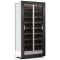 Inclined layout : this showcase can hold up to 112 bottles, inclined on aluminium tubes, of which 64 are inclined towards the front, with the label visible, and 48 are inclined towards the back, which are not visible but accessible. The maximum diameter of the bottles is 120mm, which allows for most 75cl and magnum sizes from all regions (Bordeaux, Burgundy, Champagne).