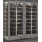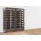 Inclined layout : this showcase can hold up to 224 bottles, inclined on aluminium tubes, of which 128 are inclined towards the front, with the label visible, and 96 are inclined towards the back, which are not visible but accessible. The maximum diameter of the bottles is 120mm, which allows for most 75cl and magnum sizes from all regions (Bordeaux, Burgundy, Champagne).