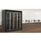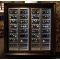 Inclined layout : this showcase can hold up to 224 bottles, inclined on aluminium tubes, of which 128 are inclined towards the front, and 96 are inclined towards the back. 100% of the labels are visibles and 100% of the bottles are accessible. The maximum diameter of the bottles is 120mm, which allows for most 75cl and magnum sizes from all regions (Bordeaux, Burgundy, Champagne).