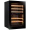 This model has a capacity of 44 bottles (18 at the top and 26 at the bottom) and is fitted with a handleless triple-glazed grey glass door made of anti-UV treated glass. It is opened using a "push-pull" system, requiring only light pressure on the door.