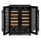 This model is equipped with a double-glazed, gray, UV-resistant tempered glass door with a black door frame. White LED interior lighting enhances bottle visibility and cellar design.