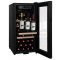 This model has a double-glazed tempered UV-resistant glass door with a black door frame. White LED interior lighting enhances the visibility of the bottles and the design of the cellar.