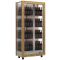Vertical presentation : this showcase can hold up to 128 bottles placed upright on tempered glass shelves. This model is not suitable for wine ageing, but it is very convenient for service and can accommodate any size of bottle, from 33cl cans to Mathusalem. It is possible to adjust the height of the shelves and to add more if necessary (see Recommended Accessories)
